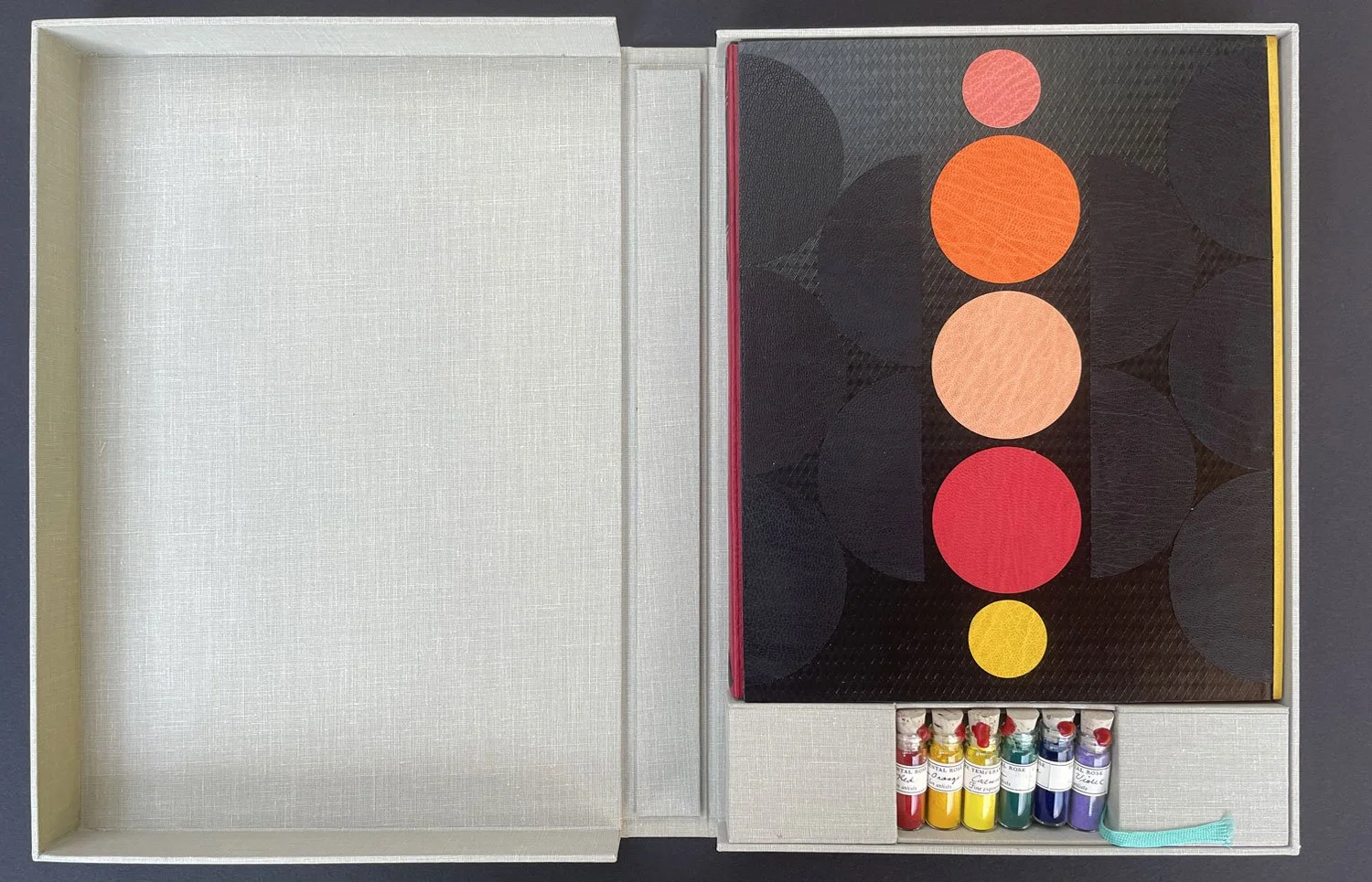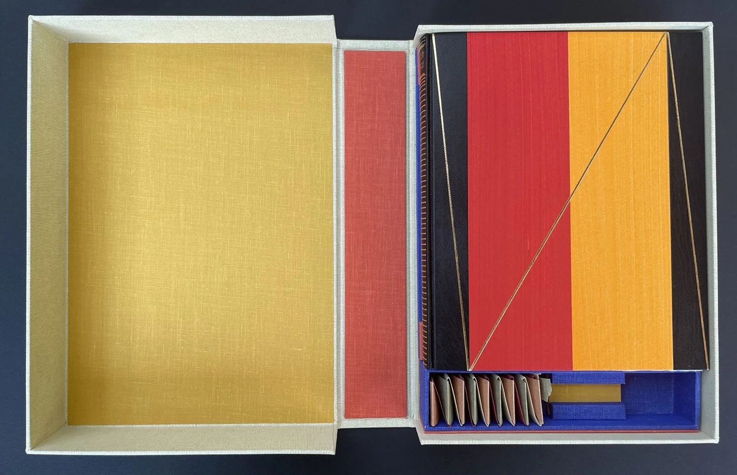 2009, 8vo, 40 pp. Edition of 30 and five A.P. numbered copies. Set in Fournier, printed by David Clifford at Black Stone Press on Arches watercolour paper. Bound in half leather with gold tooling over paste papers. Also see Bauhaus Postcards. Out of print.