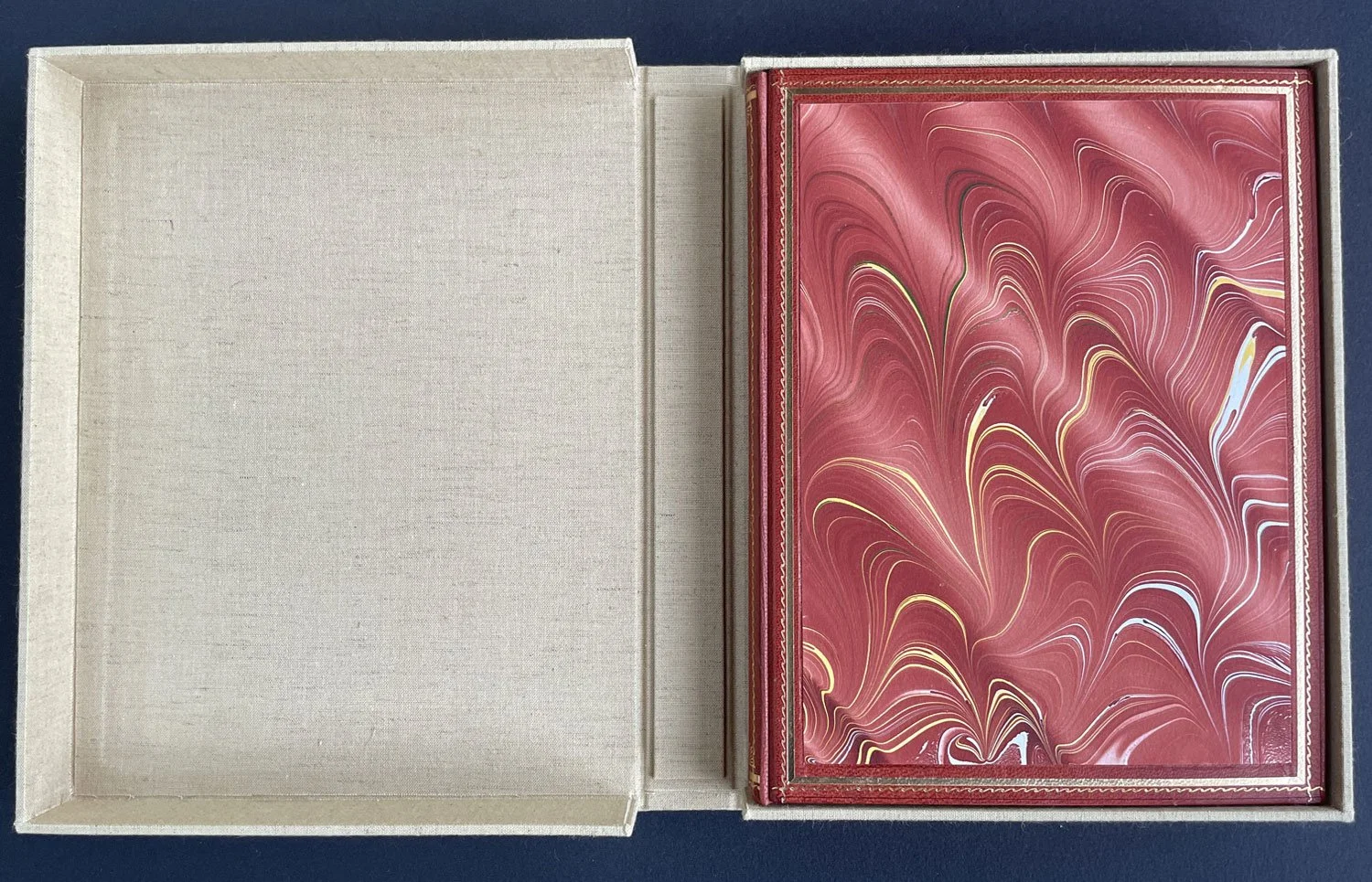 2023, 4to, 70 unnumbered pages. Edition of 17 and 3 A.P. numbered copies. Set in Fournier. Printed at HM on dampened Arches wove. Bound in leather with marbled paper over boards, with gilt tooling and leather fore-edges. Out of print.